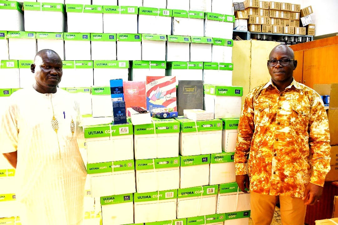 Selon Francis Paré, pour soutenir le fonctionnement des Tribunaux départementaux et d’arrondissement des communes, le SP/MABG a procédé à l’acquisition d’un lot conséquent de fournitures de bureau, d’une valeur de dix millions huit cent mille (10 800 000) FCFA. Ce matériel se compose de : 600 cartons de 5 rames de papiers blanc A4, 120 paquets de 250 sous chemises, 120 paquets de 100 chemises cartonnées, 150 paquets de 50 stylos à bille bleu et de 130 paquets de 10 bloc-notes petit format sans spirale.