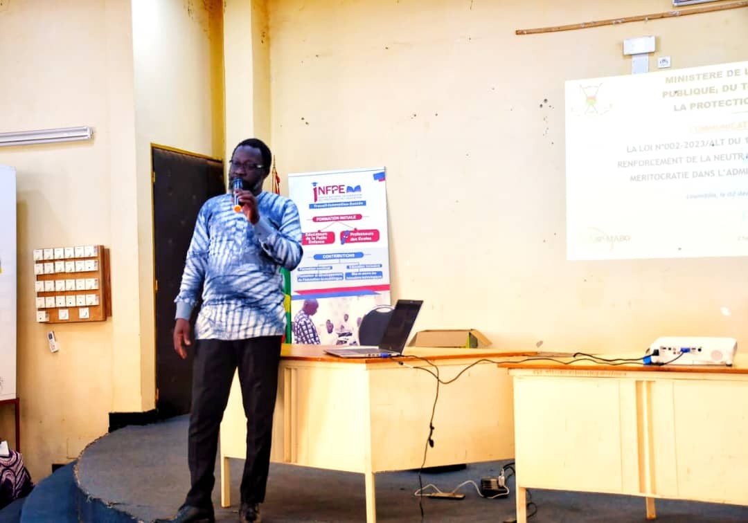 En tant qu’élèves-enseignants, la neutralité politique et la méritocratie doivent être des valeurs dans leurs pratiques quotidiennes, a-t-il laissé entendre. La communication sur la loi portant renforcement de la neutralité et de la méritocratie dans l’administration publique a été faite par Sylvain Bazié, chef de service gouvernance politique et économique au SP/MABG.